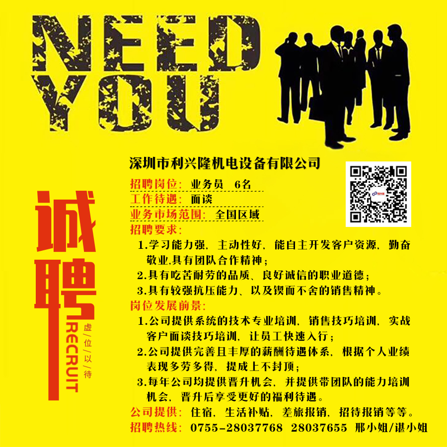 因公司發(fā)展需要,現(xiàn)特招聘業(yè)務(wù)經(jīng)理/業(yè)務(wù)員數(shù)位,不論學(xué)歷,只看能力,期待你的加入!歡迎來(lái)電咨詢,或投簡(jiǎn)歷至郵箱:sale100@szlxljd.com